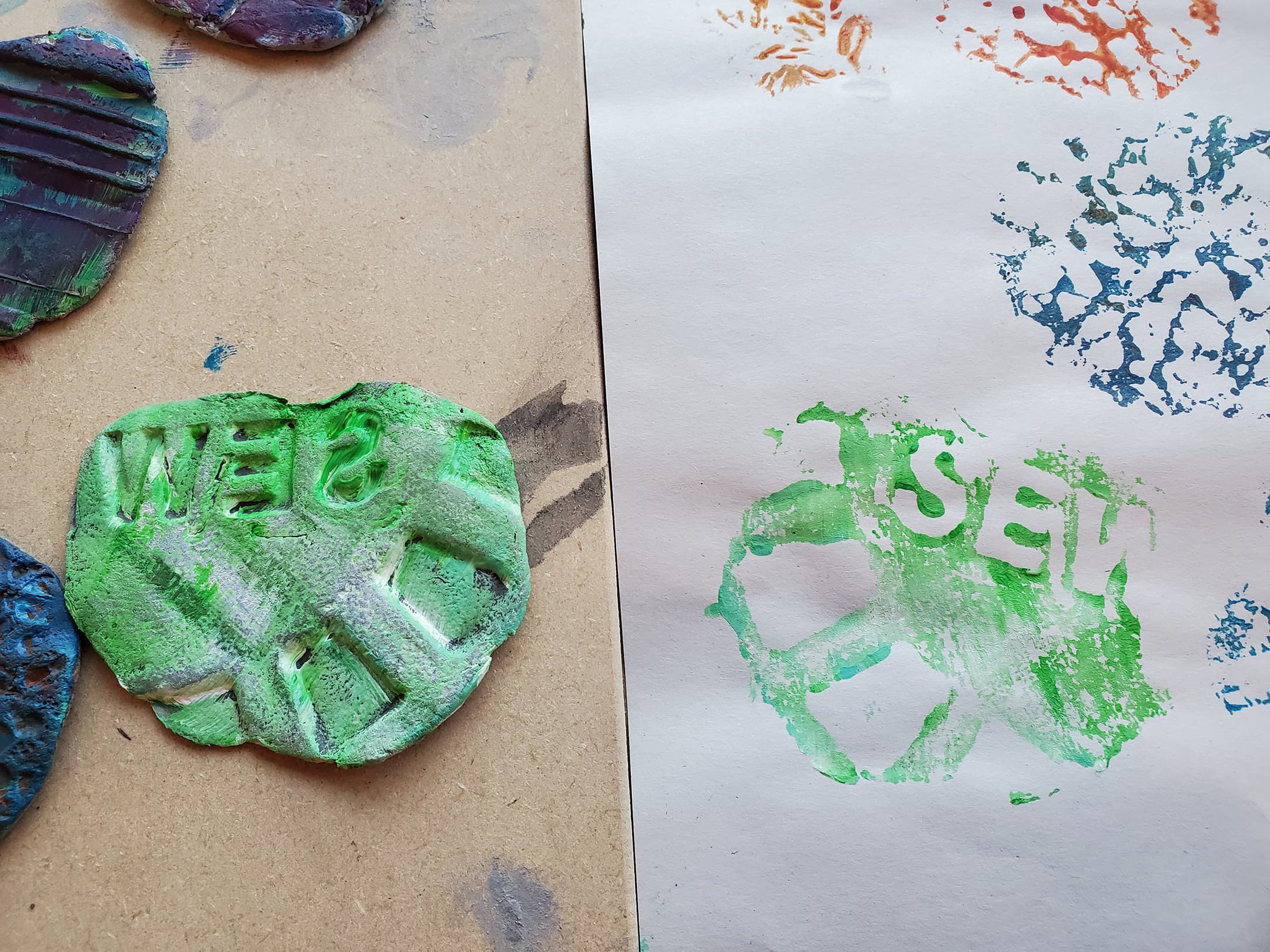 Back in the studio, we’ll experiment with printmaking, using some of our collected impressions and found materials.